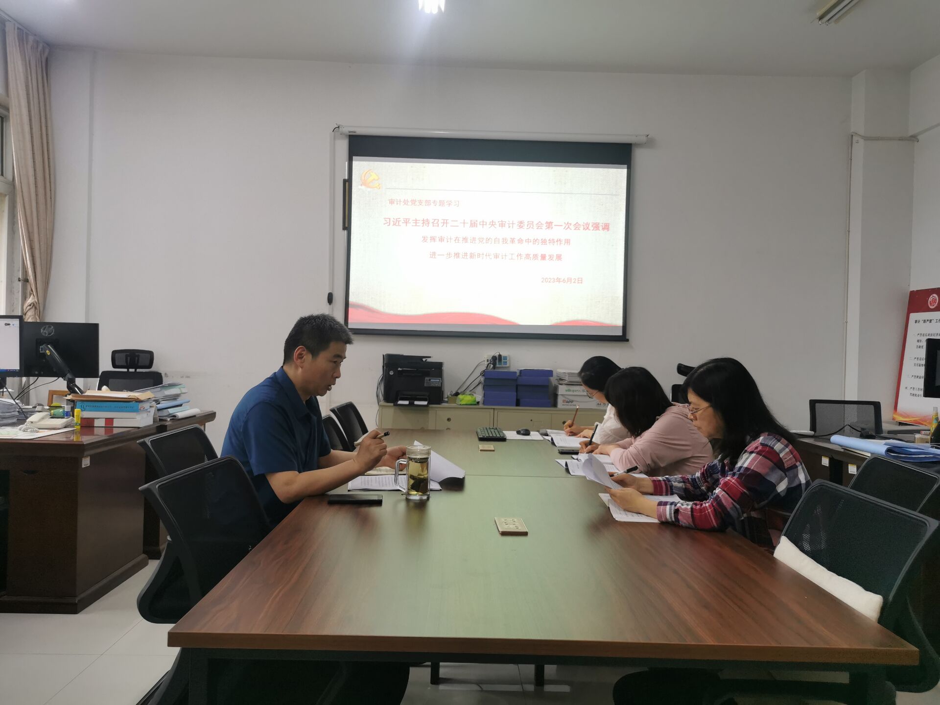 6月2日下午,审计处党支部召开党员大会,集体学习习近平总书记在二十届中央审计委员会第一次会议上的重要讲话精神,会议由支部书记郑国宏主持,审计处全体人员参会。
