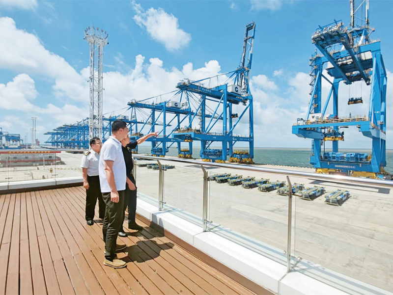 图为2023年7月12日,审计署驻太原特派员办事处在海关审计中,深入广西钦州港自动化码头,重点关注进境货物后续监管,实地走访进境货物加工企业,调查了解海铁联运运行等情况。审计署供图