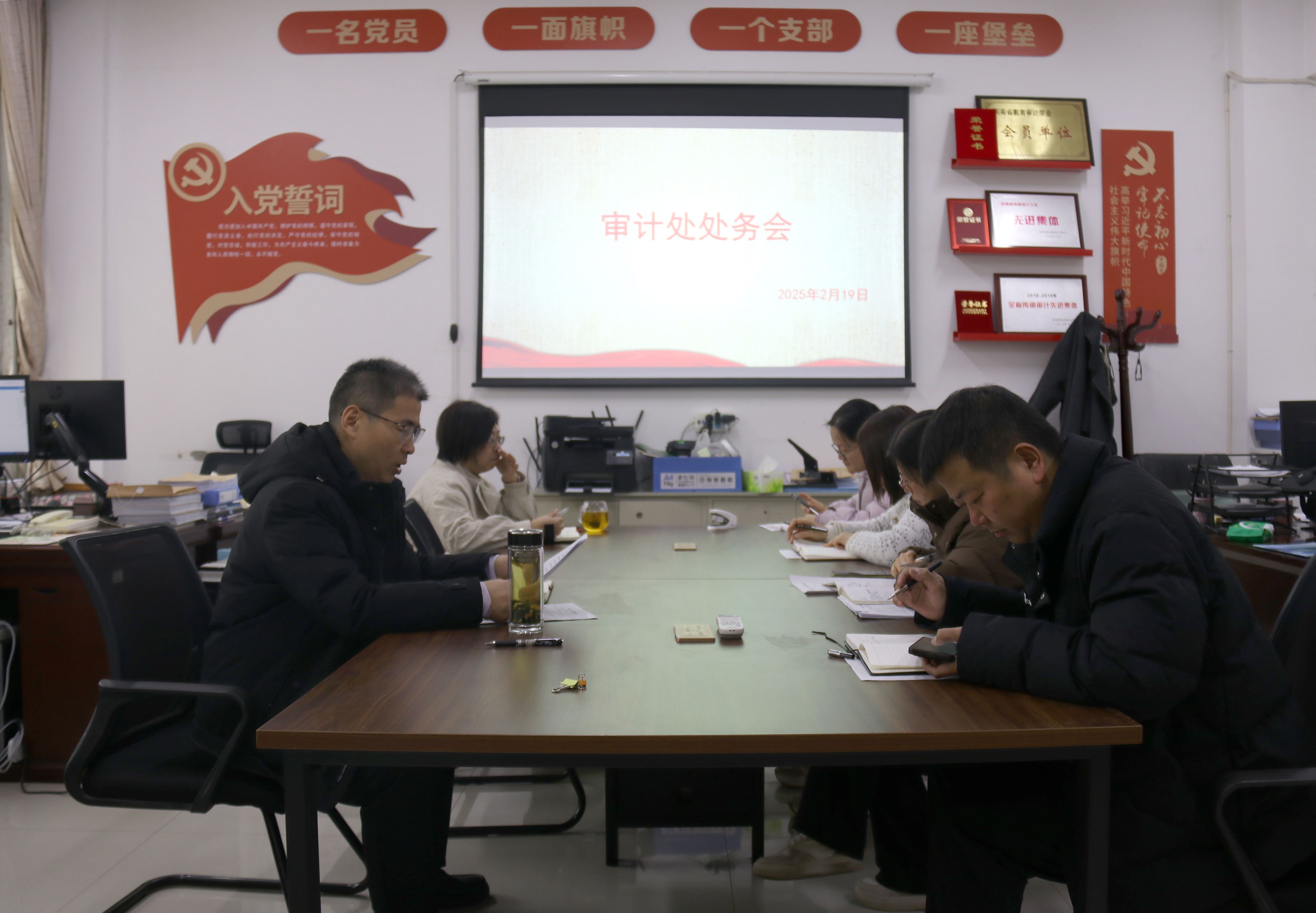 郑国宏处长带领全体人员深入学习了习近平总书记对审计工作的最新指示精神,全面传达了全国审计工作会议的核心内容,并详细解读了学校2025年工作部署会议的相关精神。